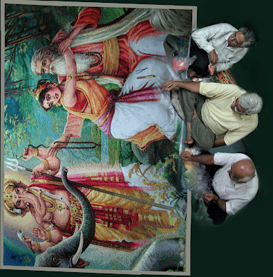 SAGOS RANGOLI DURING GANESH FESTIVAL SINCE 1961. CONTINUOUS FOR LAST 48YEARS. USING OF 40KG OF SABUDANA (SAGOS). RANGOLI SIZE APPR. (210 C.M. X 180 C.M.) COLORED SHADE NEARLY 275 TO 300 SHADES. WORKING HOURS 1800 APPROX. ASSIST MR. DAYARAM HINDISOTTA and MR. BHUPESH JOSHI. VISIT MY WEBSITE : www.sagorangoli.com